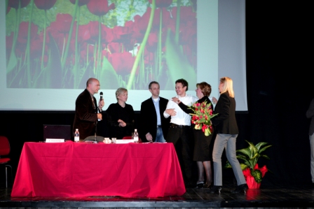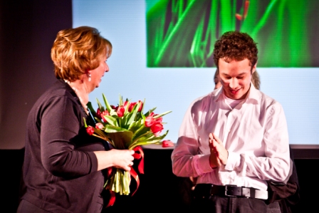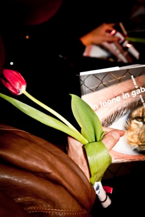 Tulipani rossi io farei come dono a tutte le persone presenti in sala, fiore che mi rappresenta per la sua forma e il suo colore.